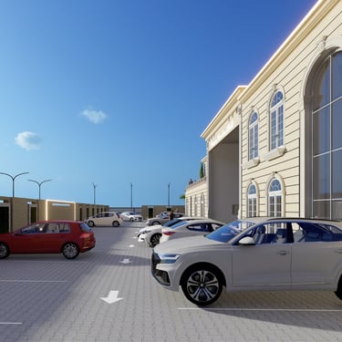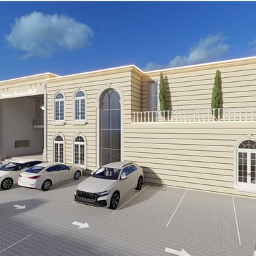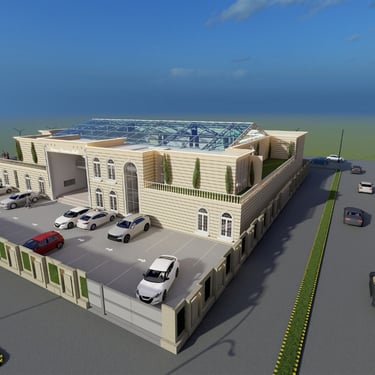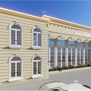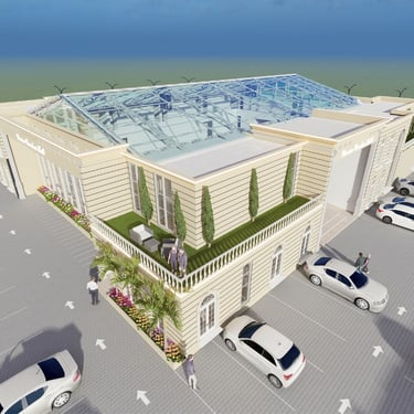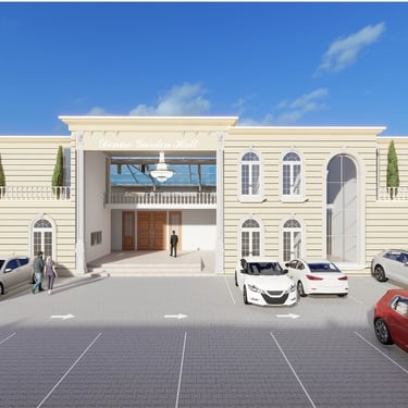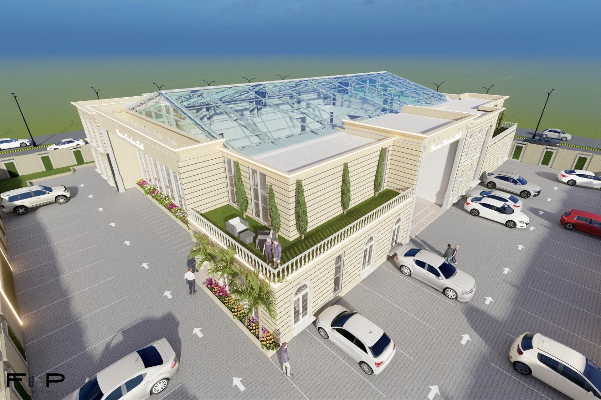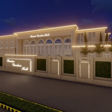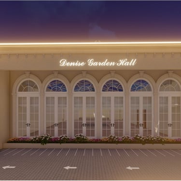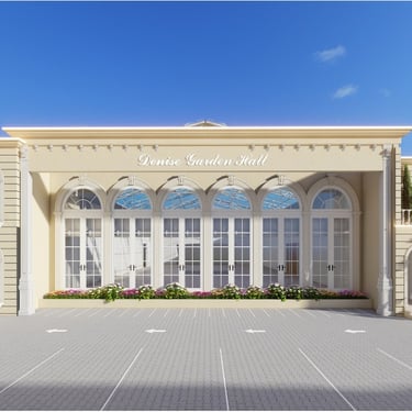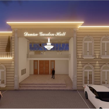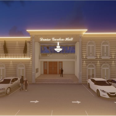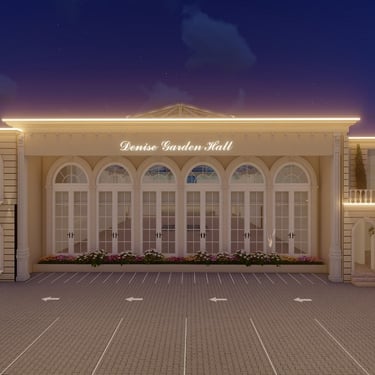 Denise Garden Marriage Hall is designed as an elegant venue for weddings and formal celebrations, featuring a refined façade, landscaped terraces, and a grand central roof structure. The design blends classical architectural elements with modern functionality to create a memorable and welcoming event space.