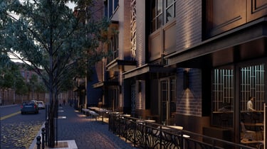 Balanced lighting, minimal detailing, and large openings enhance both style and functionality.