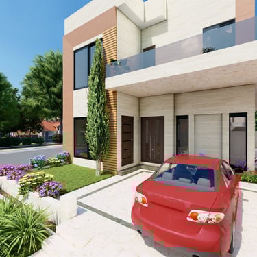 This project showcases a modern residential building design with clean geometric forms, balanced proportions, and contemporary material finishes. The layout integrates natural light, landscaped surroundings, and functional outdoor spaces to create a comfortable and visually appealing living environment.