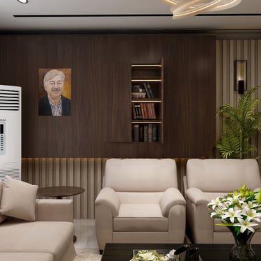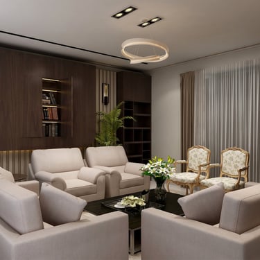 A professional lawyer's office designed within a home setting, balancing privacy, functionality, and authority. Clean layouts and refined finishes create a focused and client-ready environment.